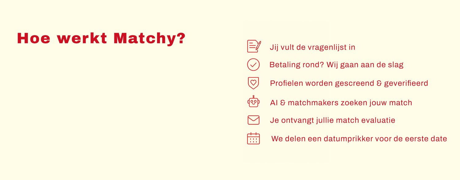 Is het een match, dan regelen wij de connectie. Je vult een datumprikker samen met je match.